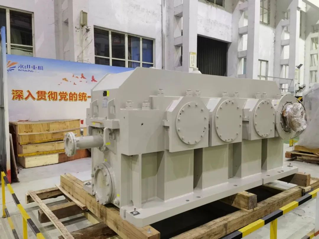 該產品是為某科研單位研發的大功率大速比NW型高速行星齒輪箱,齒輪箱額定功率8000kW,額定輸入轉速4000r/min,單級減速比20,齒輪線速度45m/s。該齒輪箱為我司自主開發的首臺NW型行星齒輪箱,解決了NW型行星機構配齒設計、均載機構設計、行星輪滑動軸承設計、薄壁氮化內齒圈制造、雙聯行星輪加工制造等關鍵技術,為我司大功率大速比高速行星齒輪箱的開發奠定了基礎。